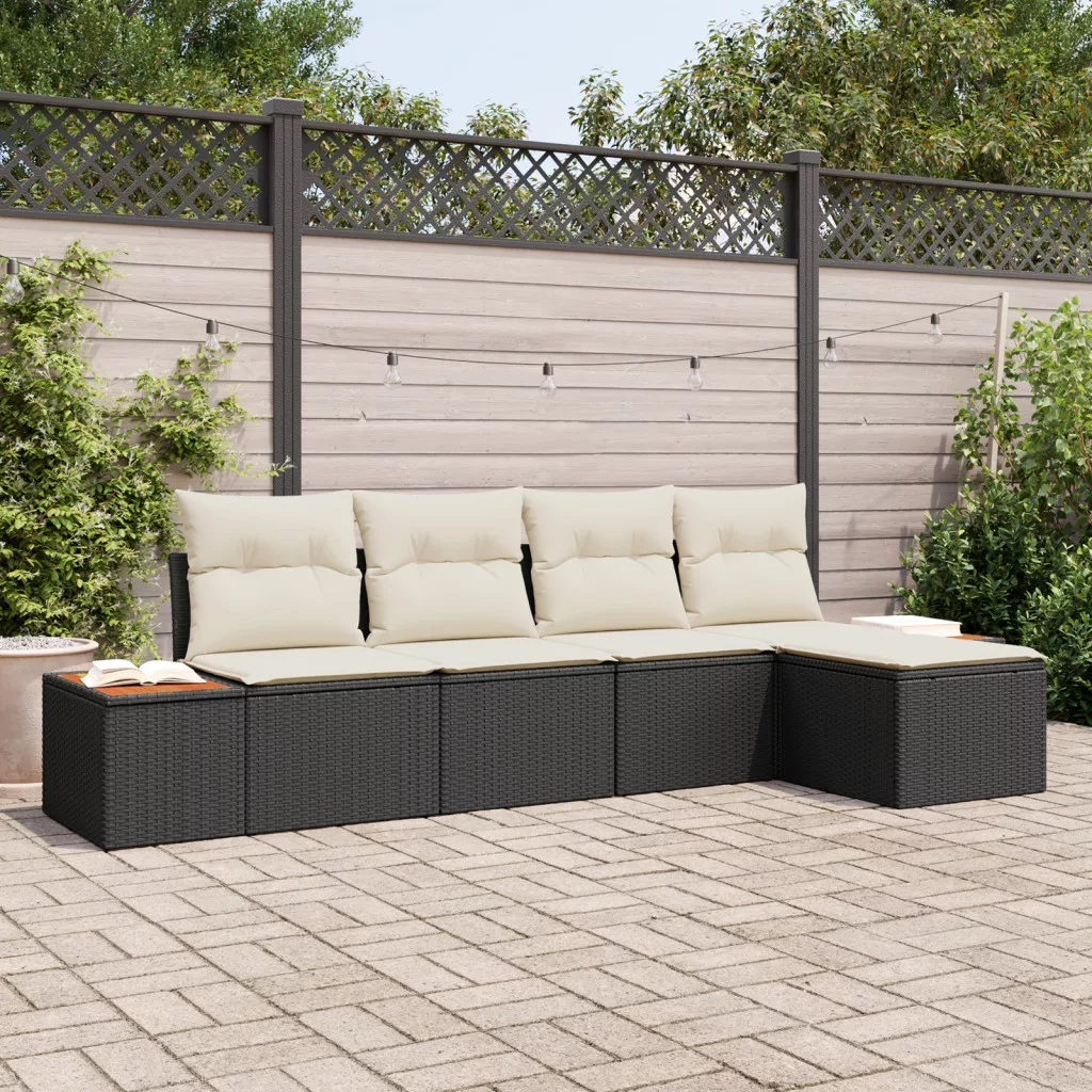 5 darabos kertibútor szett párnákkal fekete poli rattan akáciából