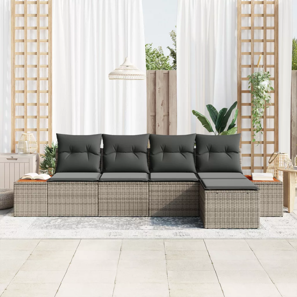 5 Darabos Kerti Kanapé Szett Párnákkal Szürke Poli Rattan Akác