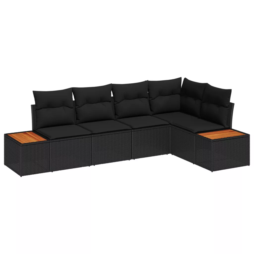 5 részes kerti kanapé szett párnákkal, fekete, poli rattan, akácia
