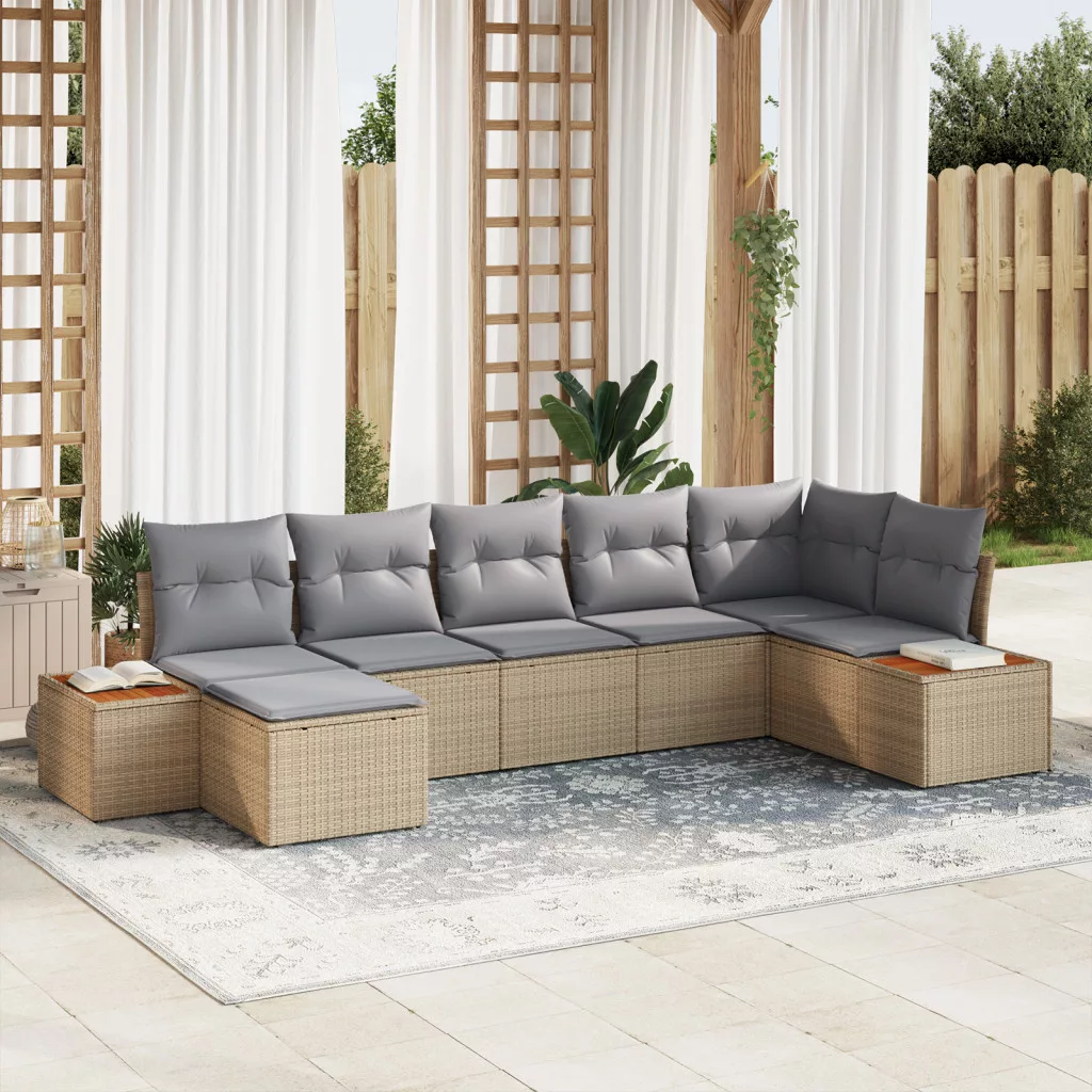 7 Darabos Kert Kanapé Szett Párnákkal Bézs Polirattan Akácia