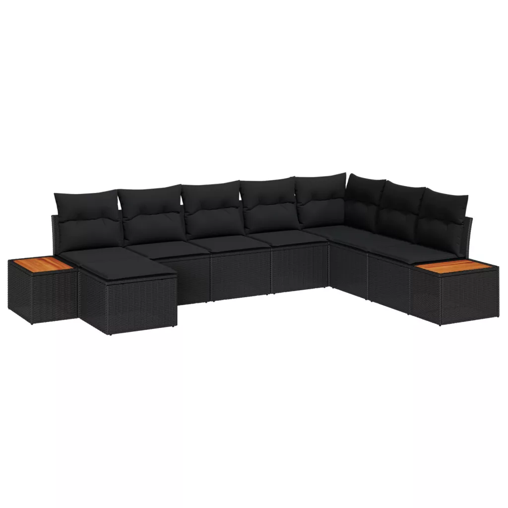 8 Részes Kerti Kanapé Szett Párnákkal Fekete Polirattan Akác
