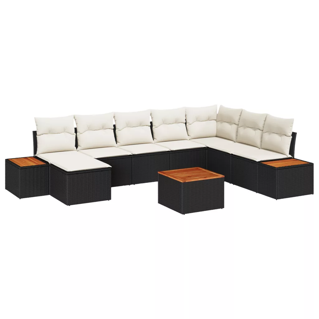 9 Darabos Kert Kanapé Szett Párnákkal Fekete Poli Rattan Akácia