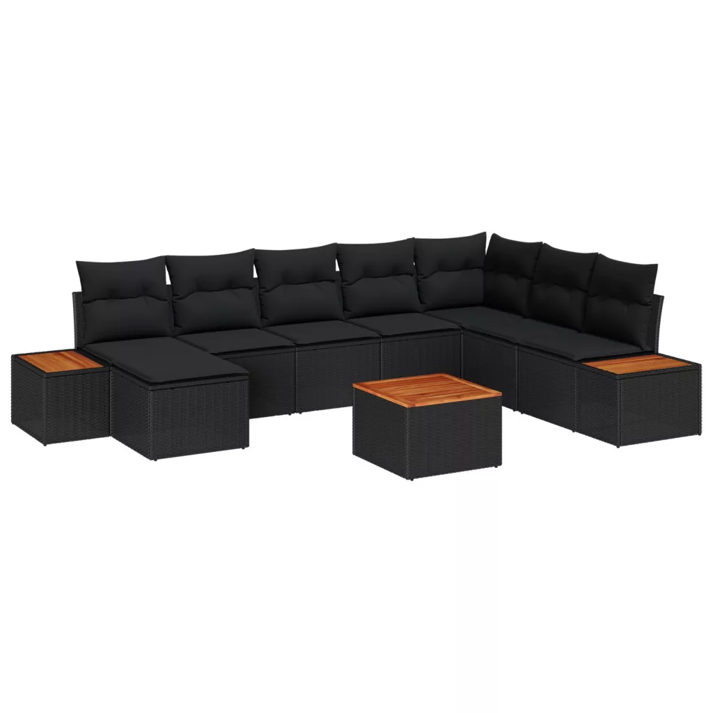 9 darabos kerti kanapé szett párnákkal fekete poli rattan akácból