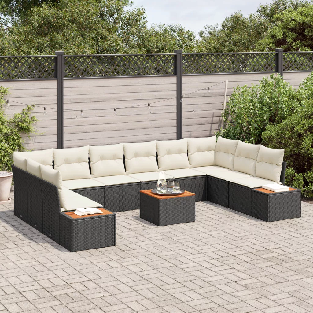 11 részes kerti kanapé szett párnákkal fekete poli rattan akácia