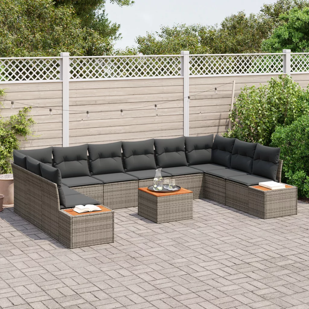 11 darabos Kerti Kanapé Szett párnákkal Szürke Poli Rattan Akáciával