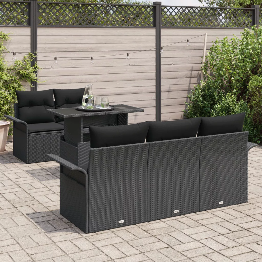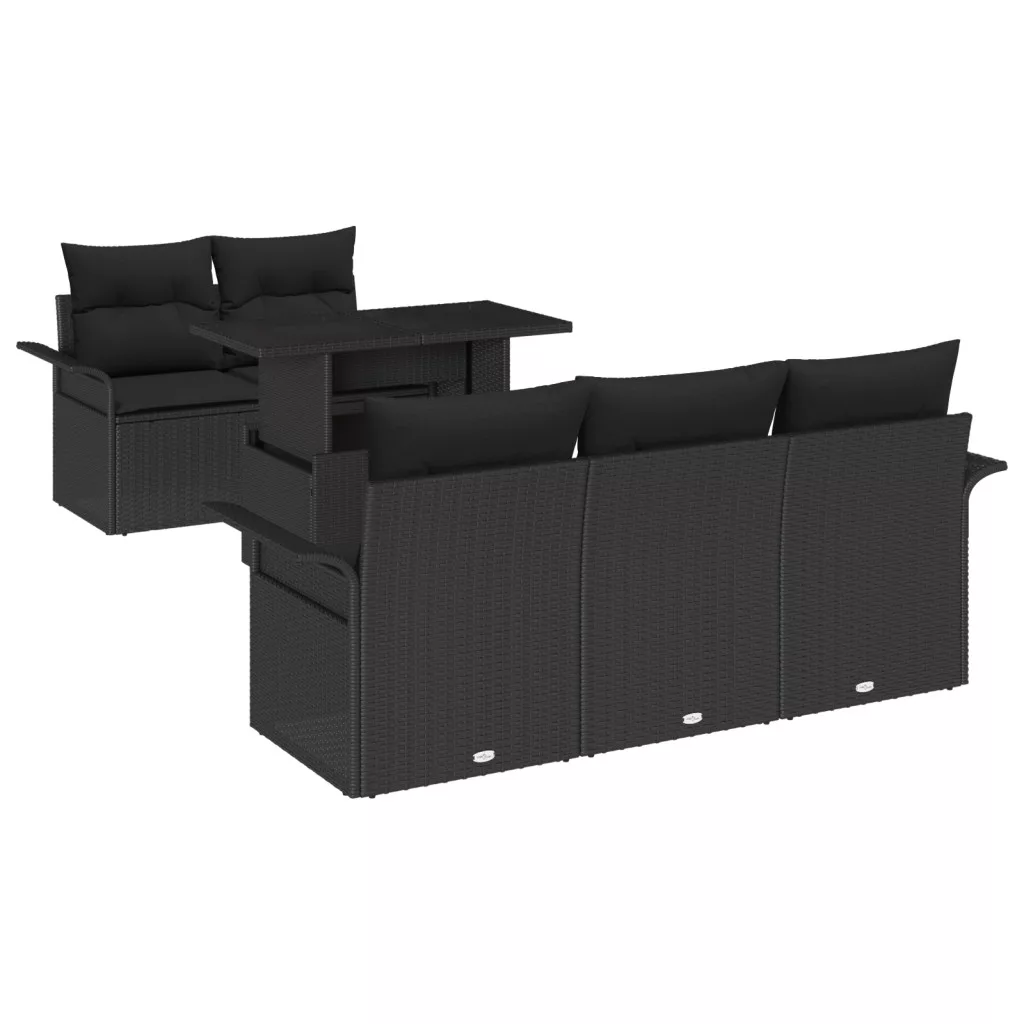6 Részes Kerti Kanape Szett Párnákkal Fekete Polírattan
