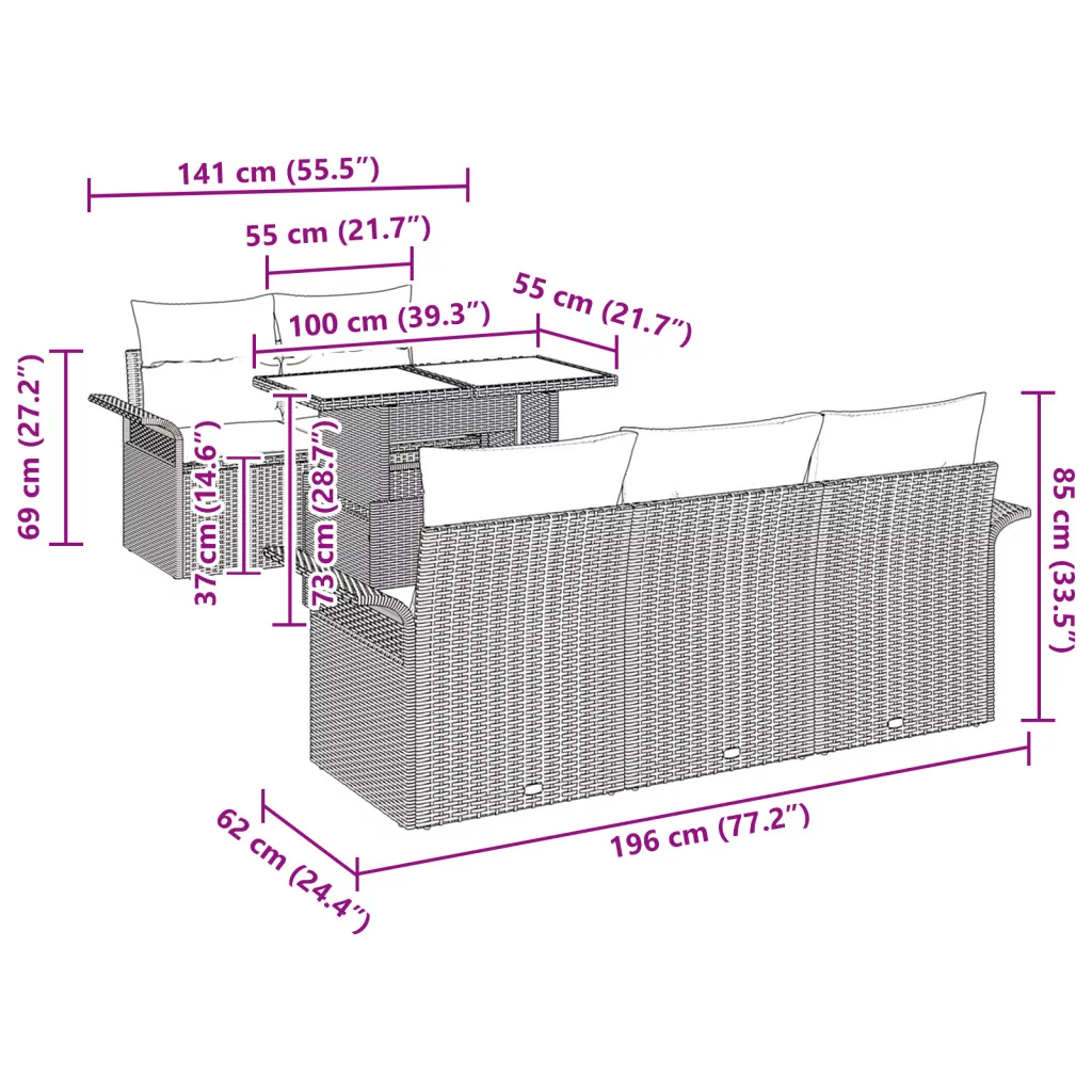 Ez a kerti kanape szett a kényelmet és stílust helyezi előtérbe, tökéletes kültéri helyekhez. Letisztult dizájnja és kényelmes párnái bármilyen erkélyt vagy teraszt kellemes pihenőhellyé varázsolnak. Kényelmes, párnázott párnák fantasztikus ülést biztosítanak, ideális hosszú pihenős ülésekhez. Időjárásálló anyagok jól bírják a napot és az esőt, így bármilyen időben tartósak. Modern megjelenése illik mindenféle stílushoz, feldobja a kültéri látványt. Moduláris elrendezés lehetővé teszi, hogy testre szabd az elemeket. Tartalmaz egy asztalt az italok és falatok könnyű eléréséhez a találkozók során.