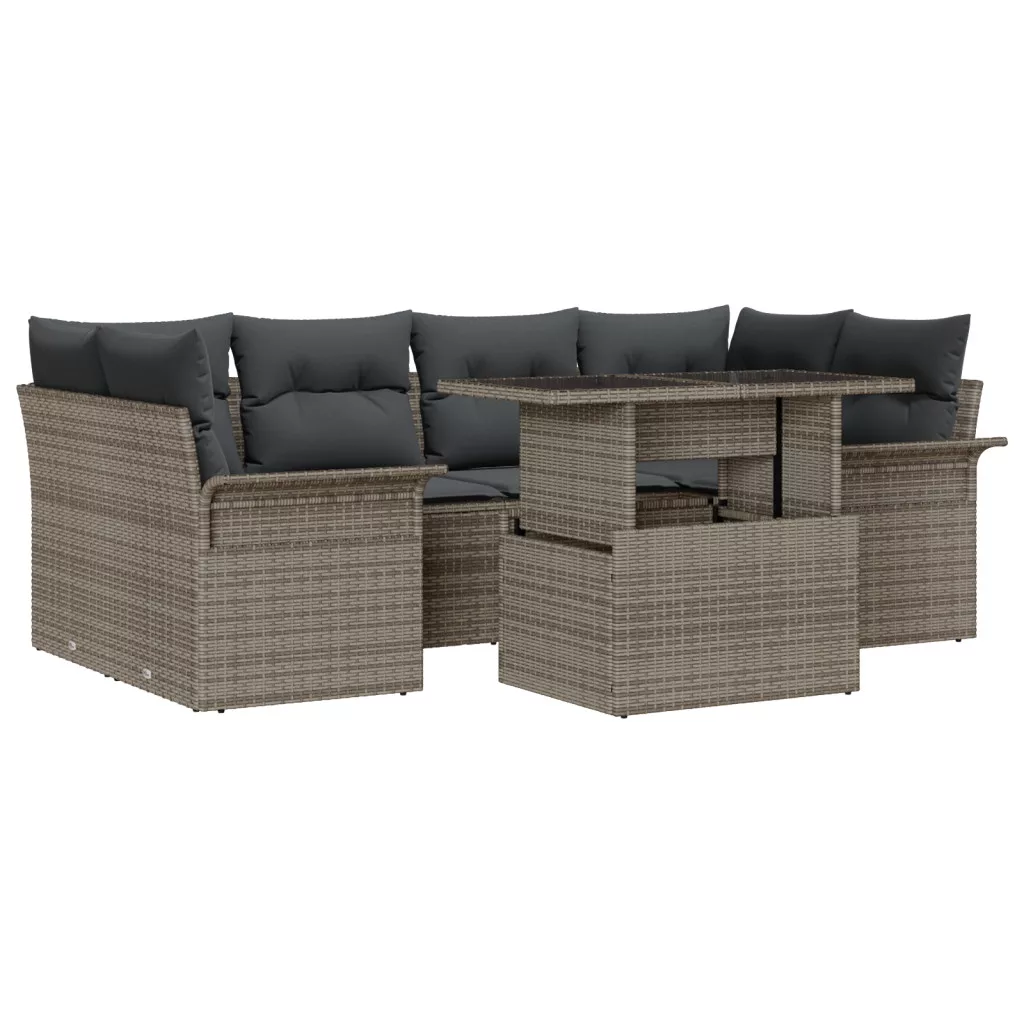 7 darabos kerti kanapé szett párnákkal szürke poli rattan