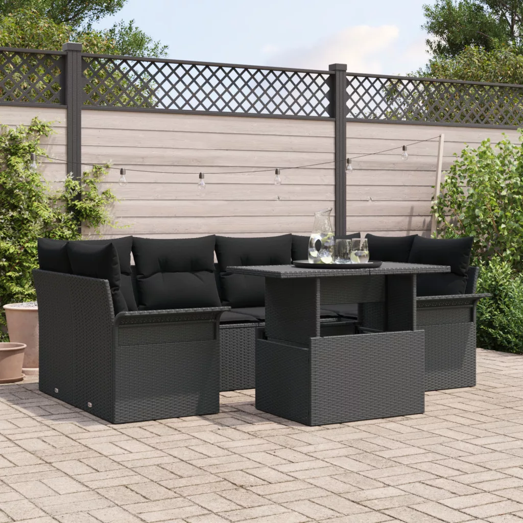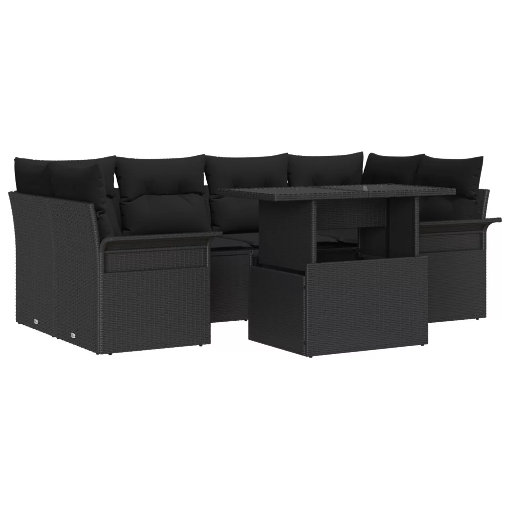 7 darabos kert kanapé szett párnákkal fekete poli rattan