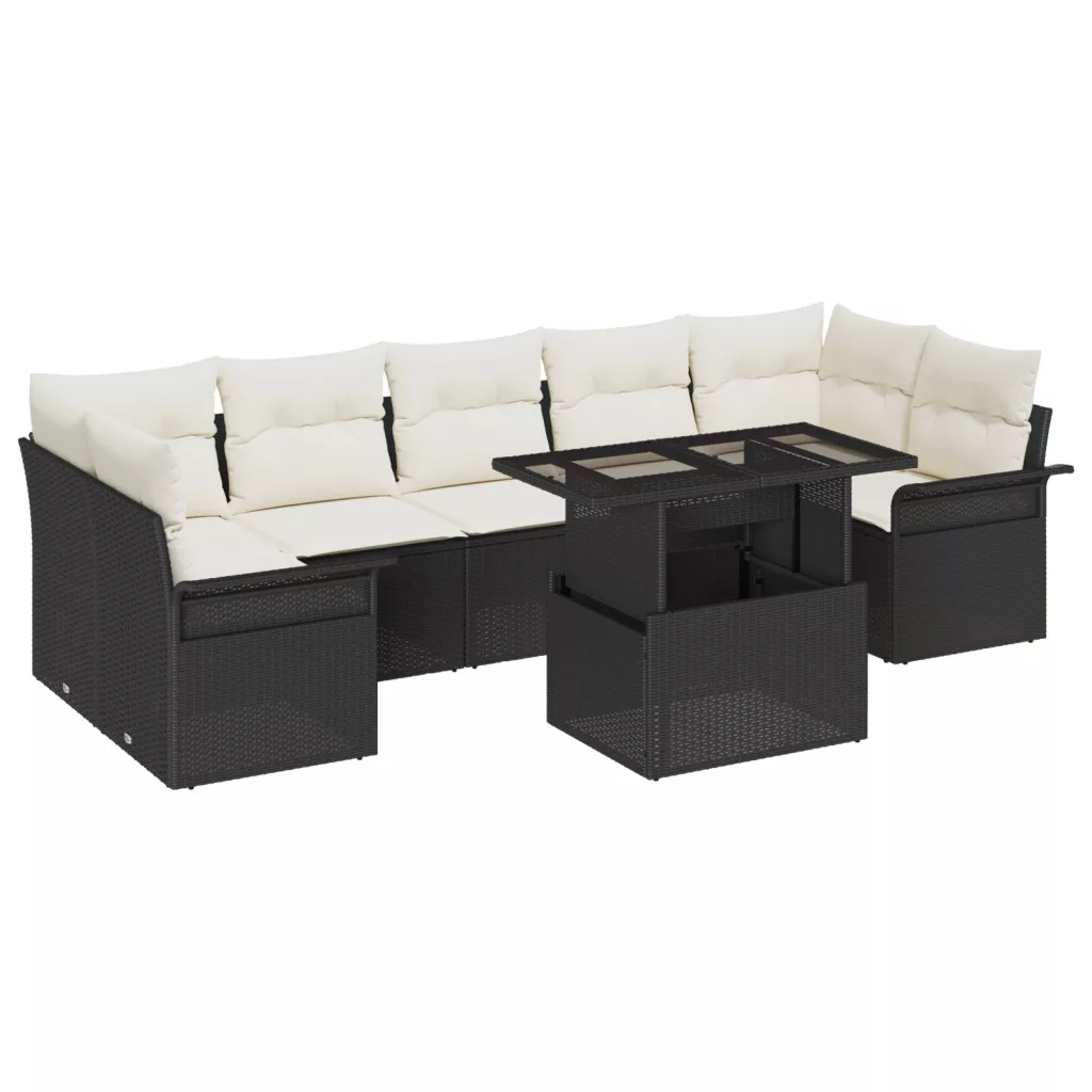 8 darabos kerti kanapé szett párnákkal fekete poli rattan