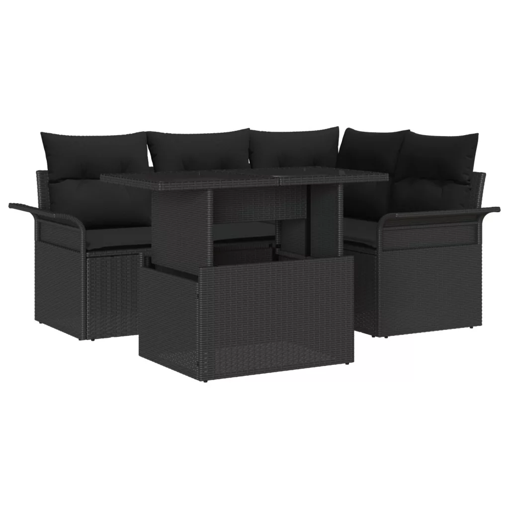 5 darabos Kerti Kanapé Készlet párnákkal Fekete Poli Rattan
