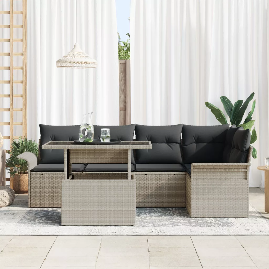 6 darabos Kertibútor Szett Párnákkal Világosszürke Poli Rattan
