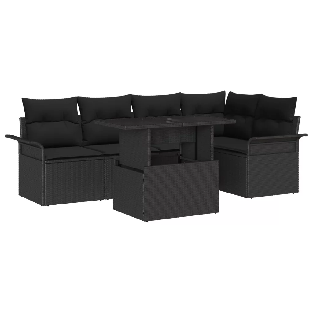 6 Részes Kerti Kanapé Szett Párnákkal Fekete Poli Rattan