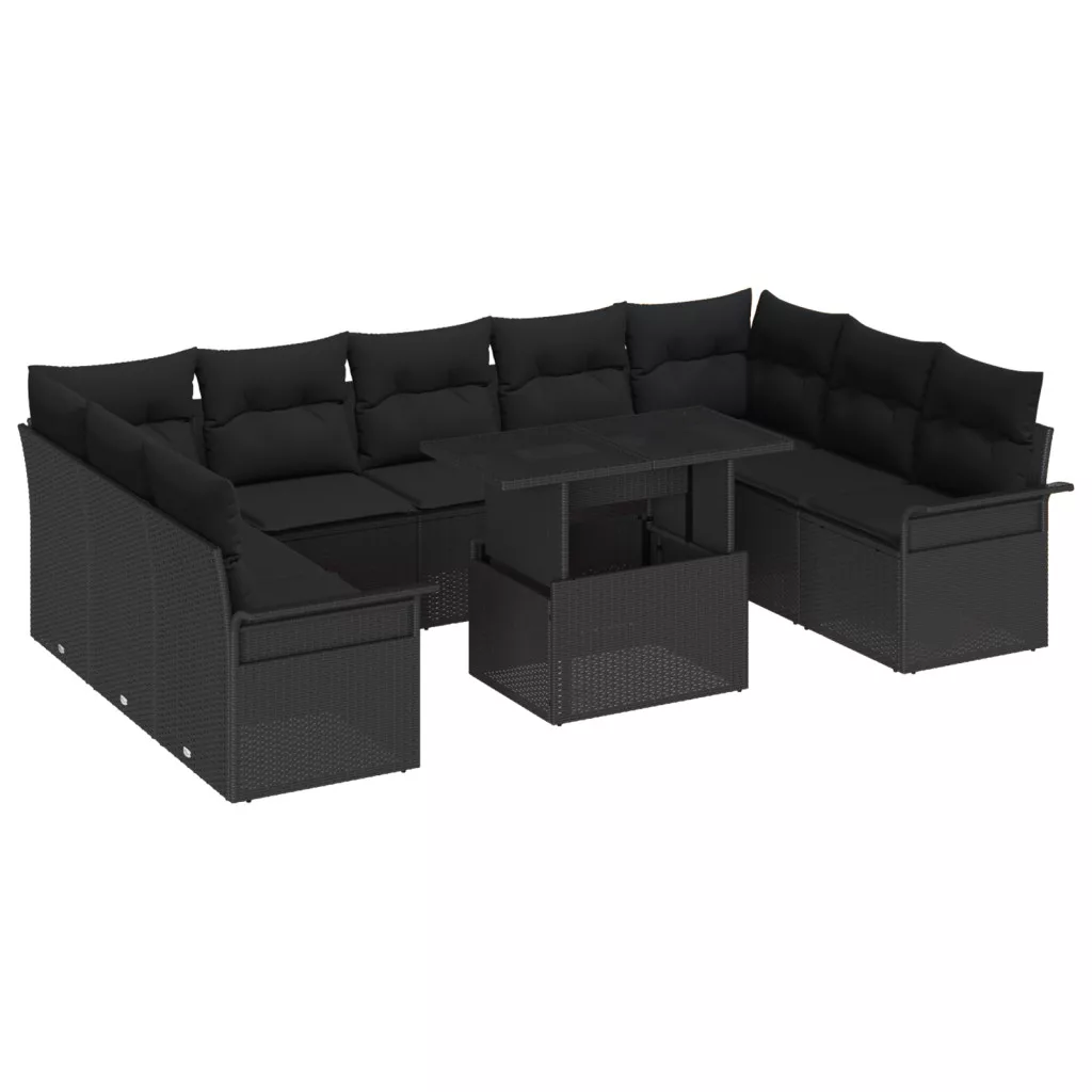 10 darabos kerti kanapé szett párnákkal fekete poli rattan