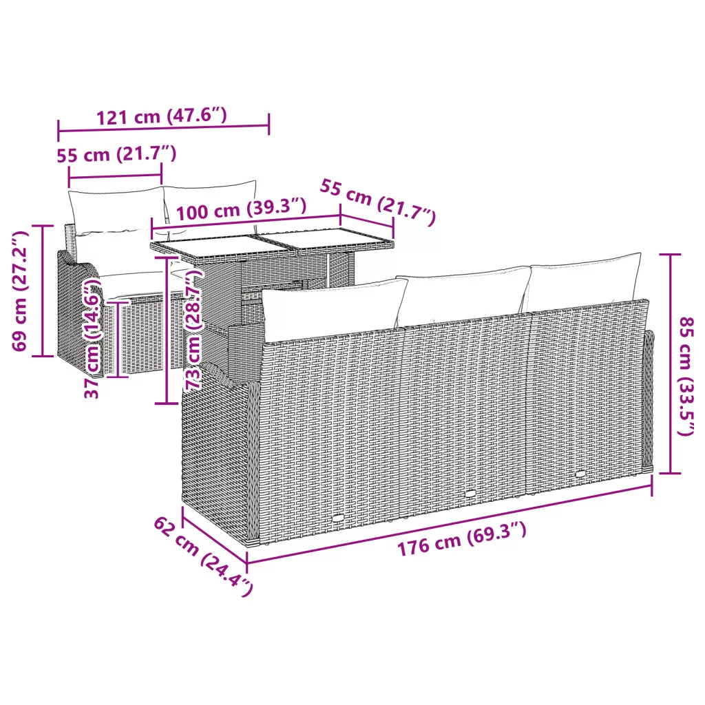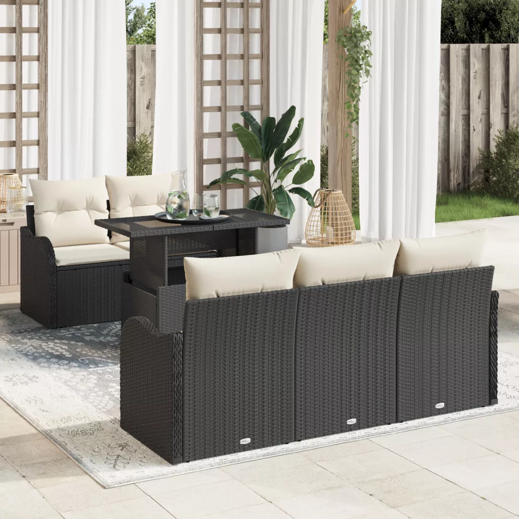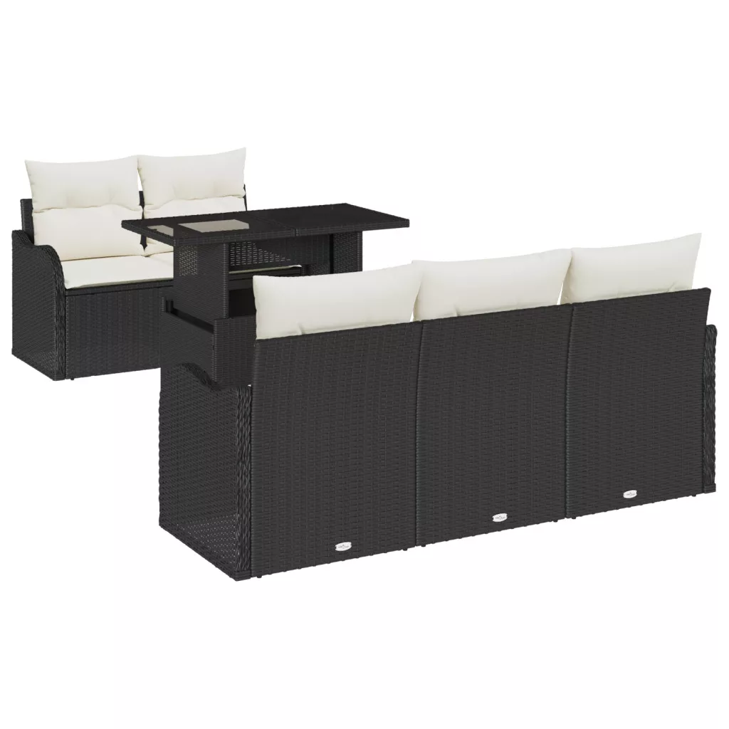 6 darabos kerti kanapé szett párnákkal fekete polirattan