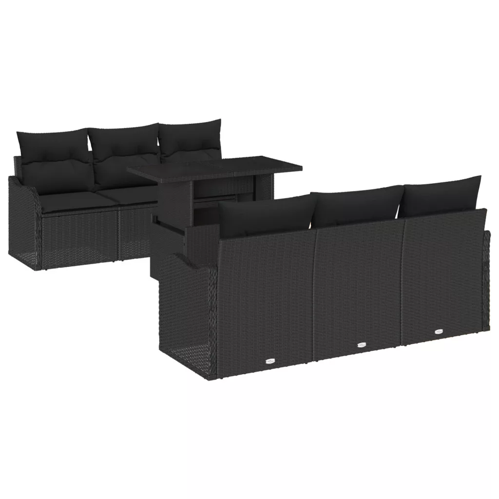 7 darabos kerti kanapé szett párnákkal fekete poli rattannal