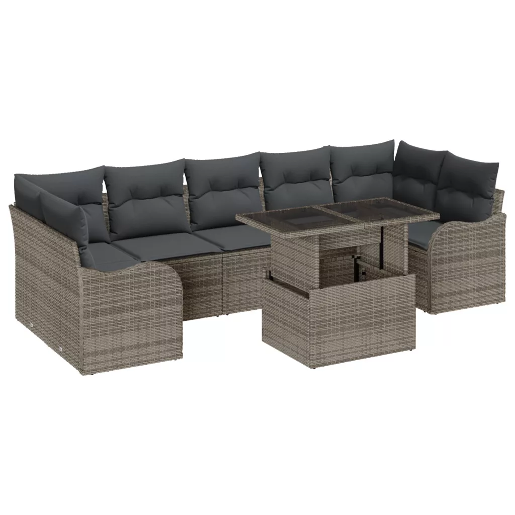 8 részes kerti kanapé szett párnákkal Szürke Poli rattan