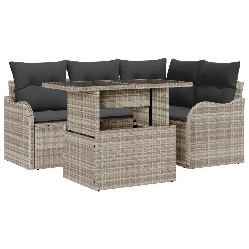 5 Darabos Kerti Kanapé Szett Párnákkal Világosszürke Polirattan