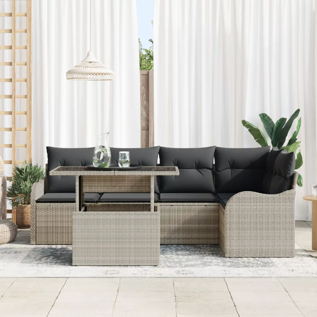 6 darabos kert kanapé szett párnákkal világosszürke PE rattannal