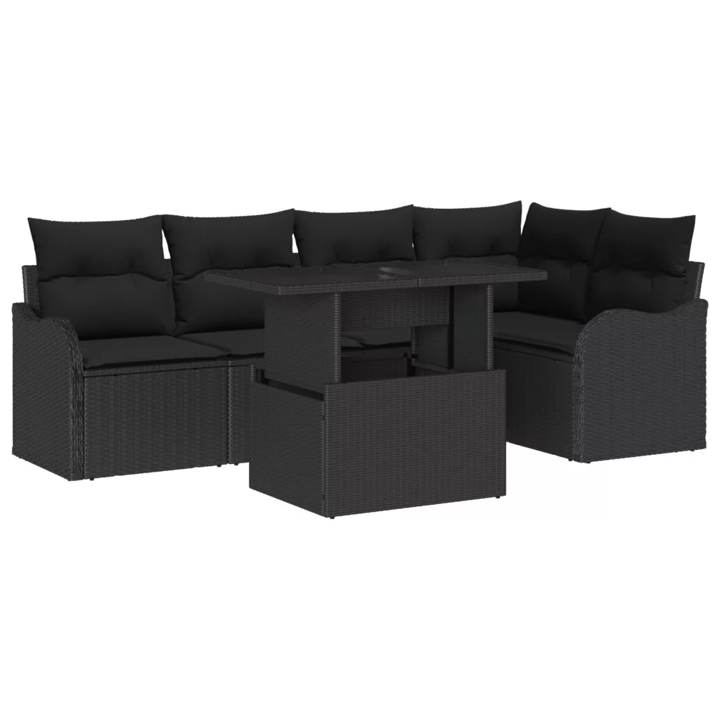 6 darabos kerti kanapészett párnákkal fekete poli rattan