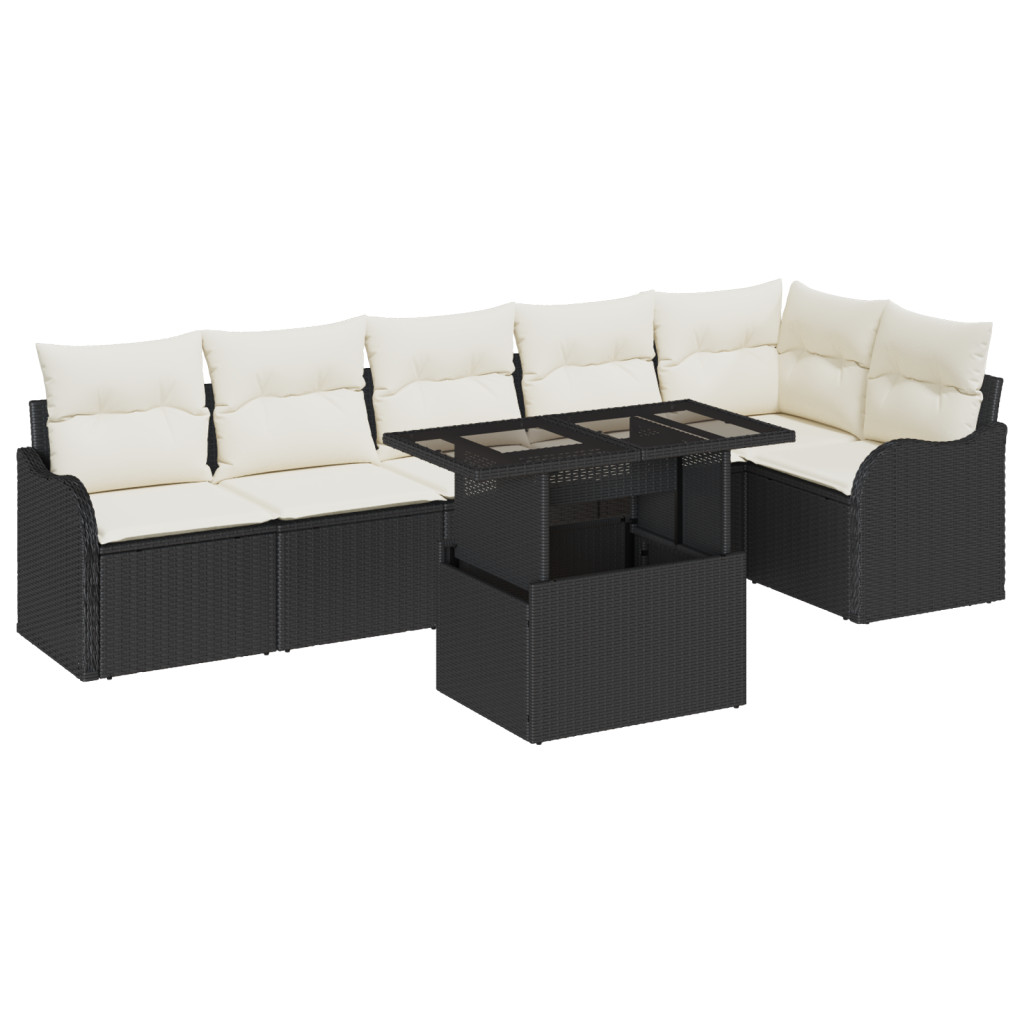 7 darabos Kerti Kanapé Szett Párnákkal Fekete Poli Rattan
