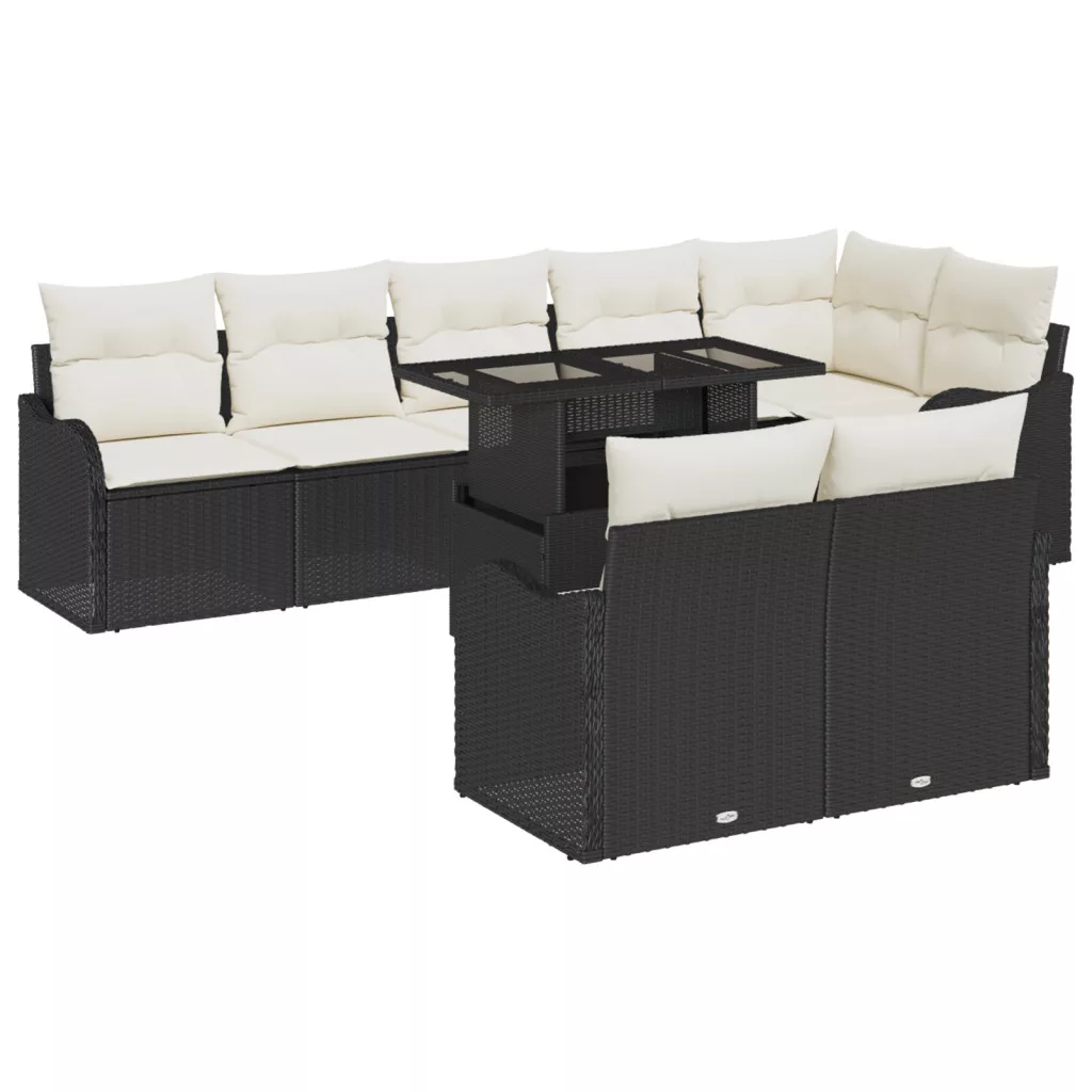9 Részes Kerti Kanapé Szett Párnákkal Fekete Poli Rattan