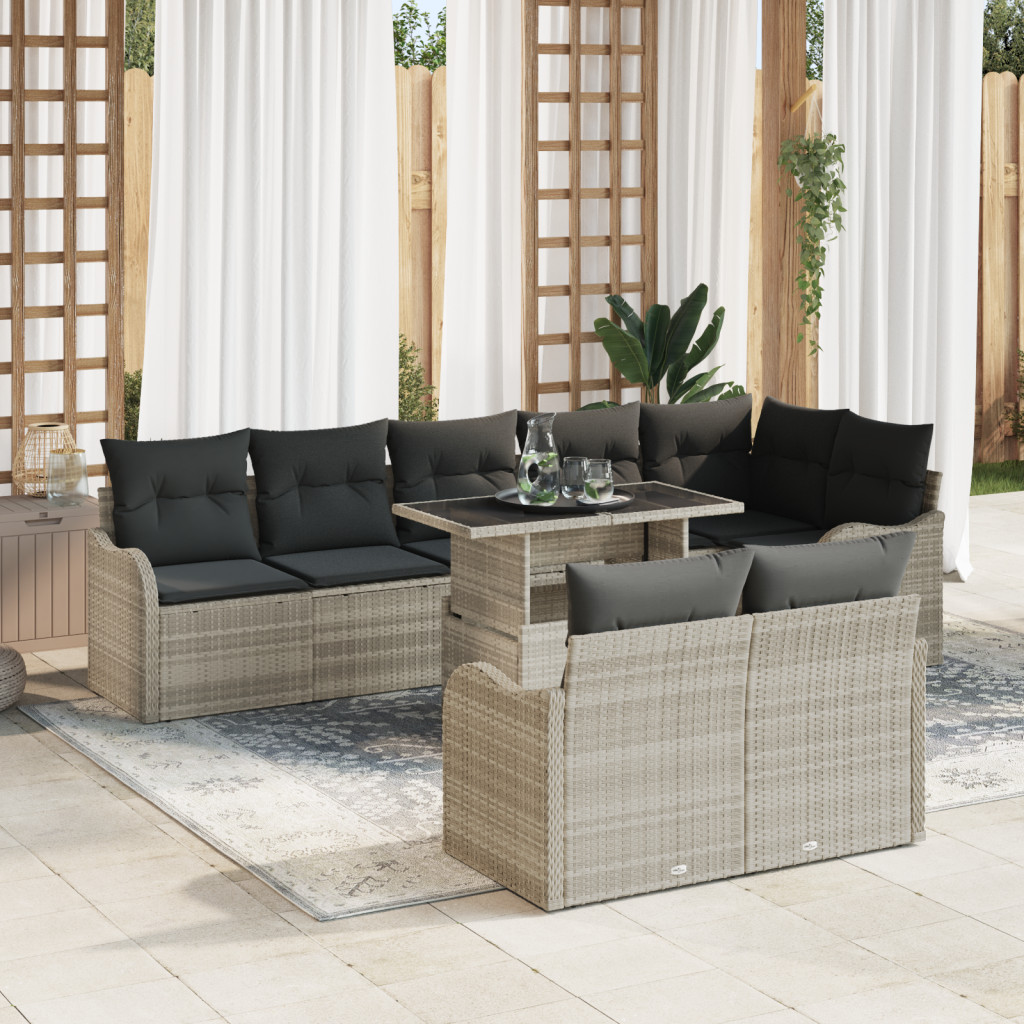 9 darabos kerti kanapé szett párnákkal világosszürke poli rattan