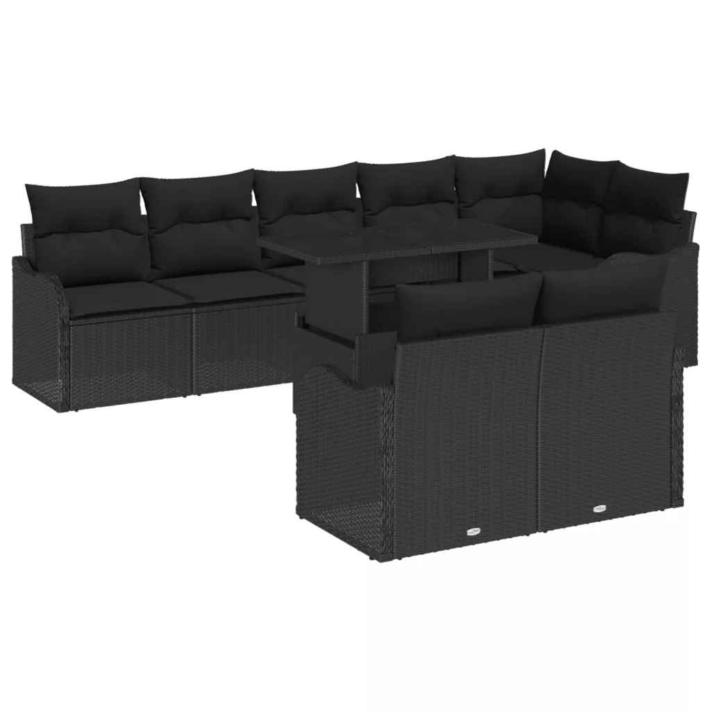 9 darabos kerti kanapé szett párnákkal fekete poli rattan