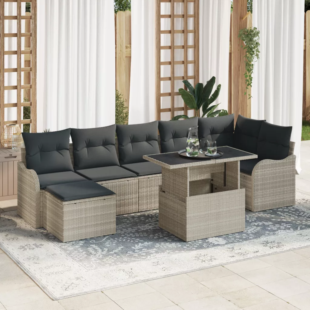 8 Részes Kerti Kanapé Szett Párnákkal Világosszürke Poli Rattan