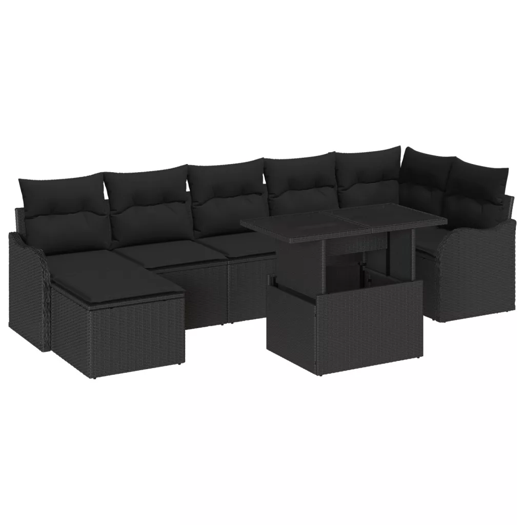 8 darabos kerti kanapé szett párnákkal Fekete Polirattan