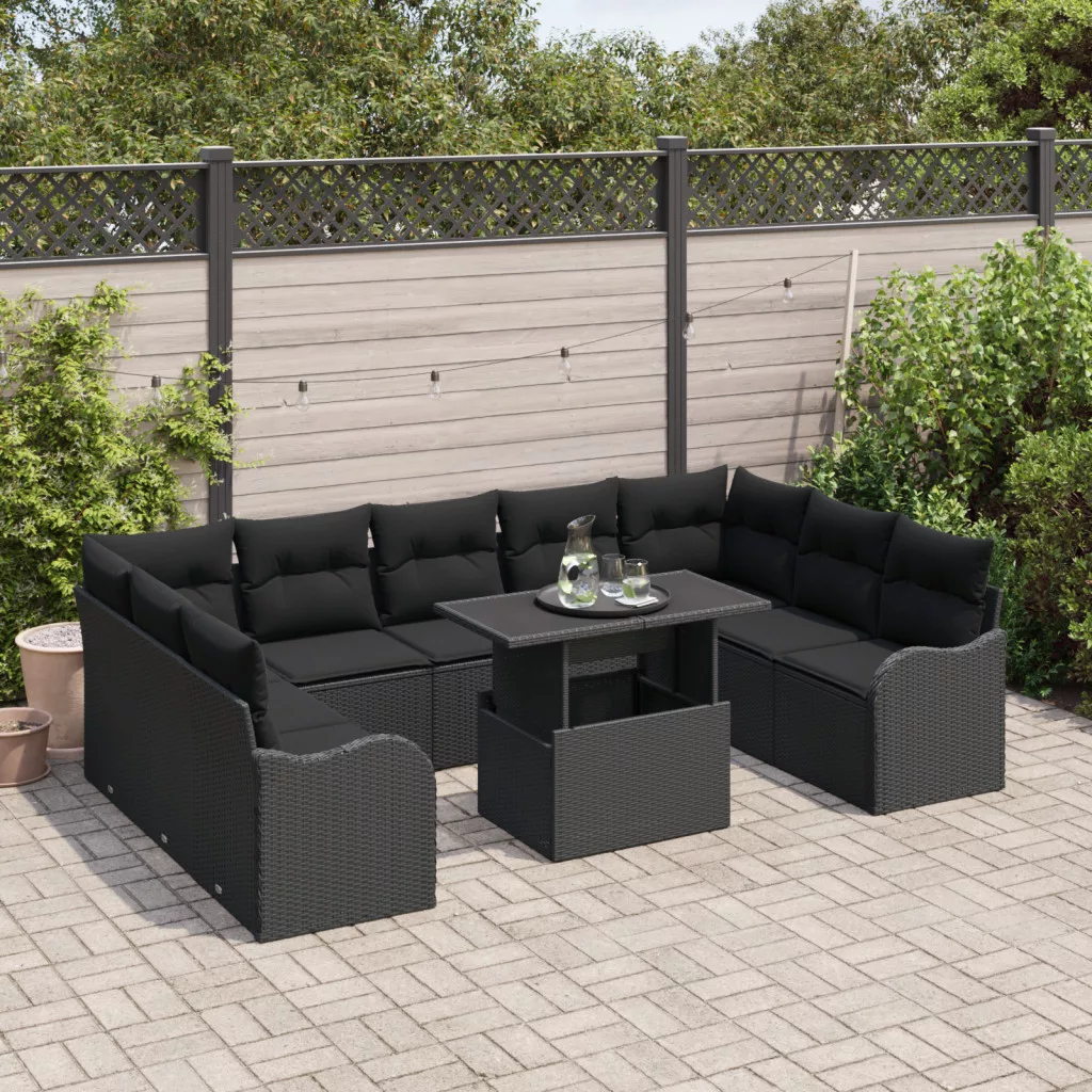 10 részes kerti kanapé szett párnákkal fekete poli rattan