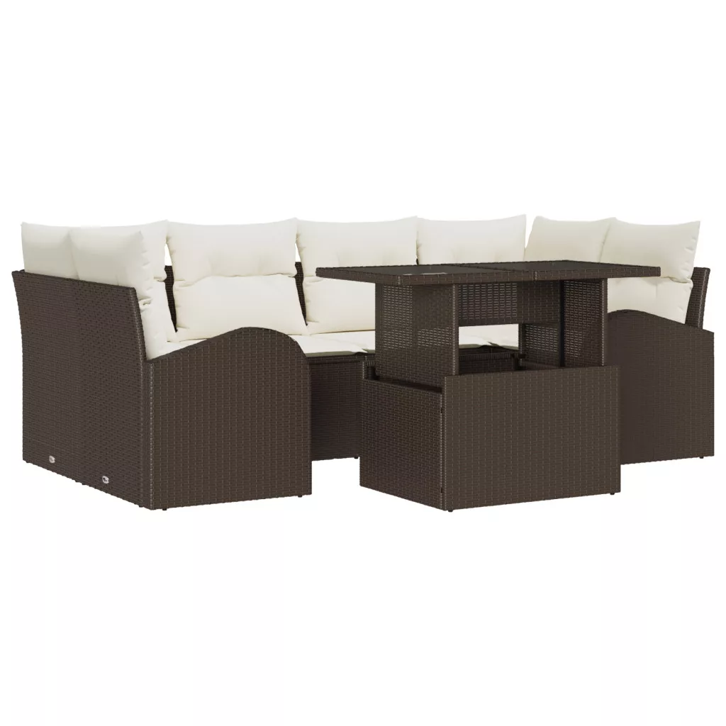 7 darabos kerti kanapé szett párnákkal Barna Polirattan
