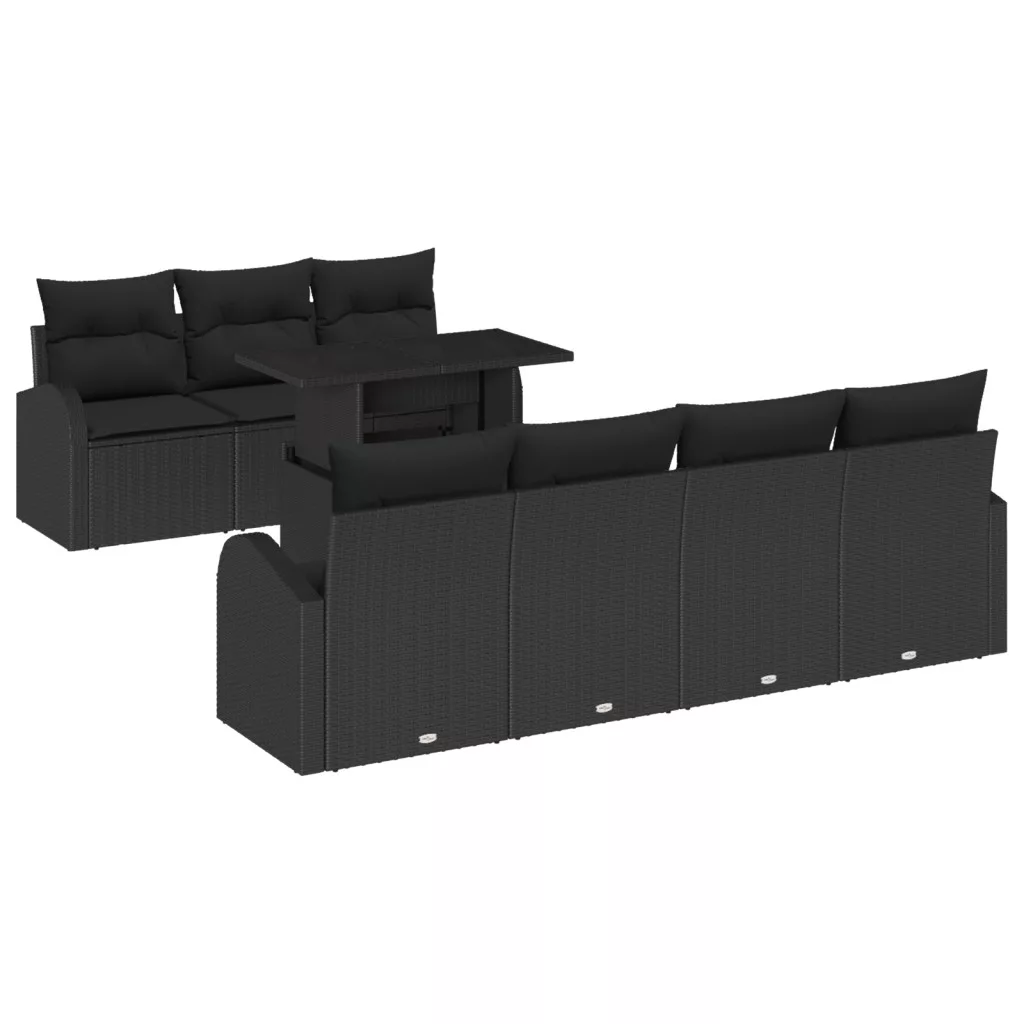 8 Darabos Kerti Kanapé Szett Párnákkal Fekete Poli Rattan