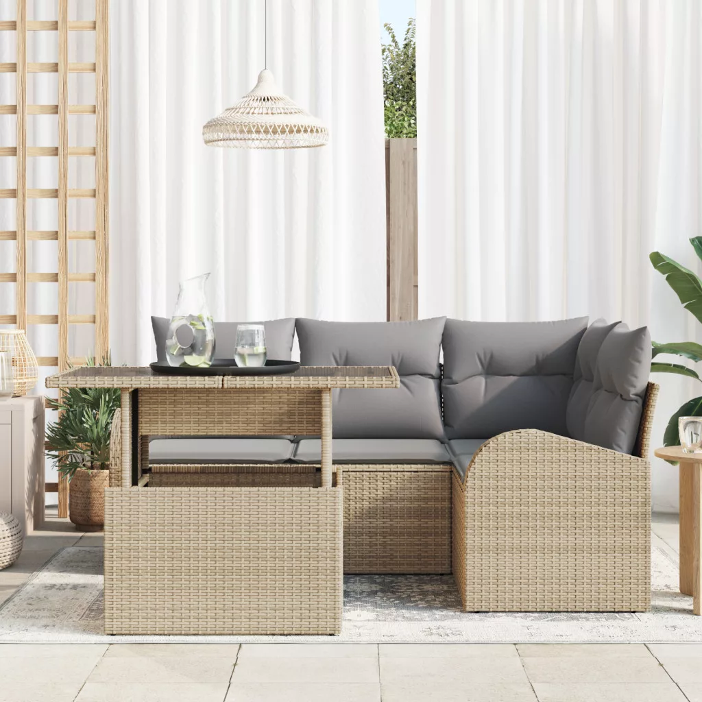 5 részes Kerti Kanapé Szett párnákkal, Bézs Poli Rattan