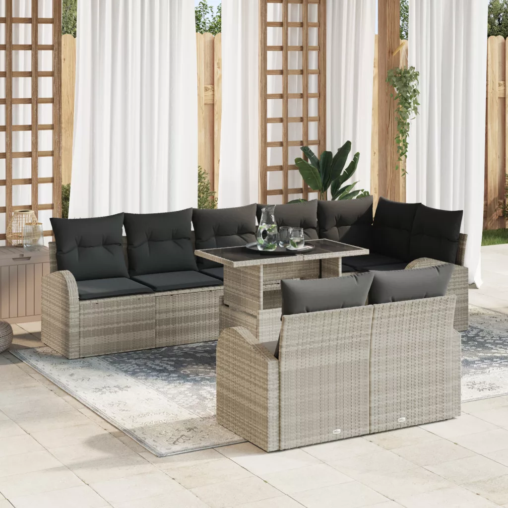 9 darabos kerti kanapé szett párnákkal világosszürke poli rattán