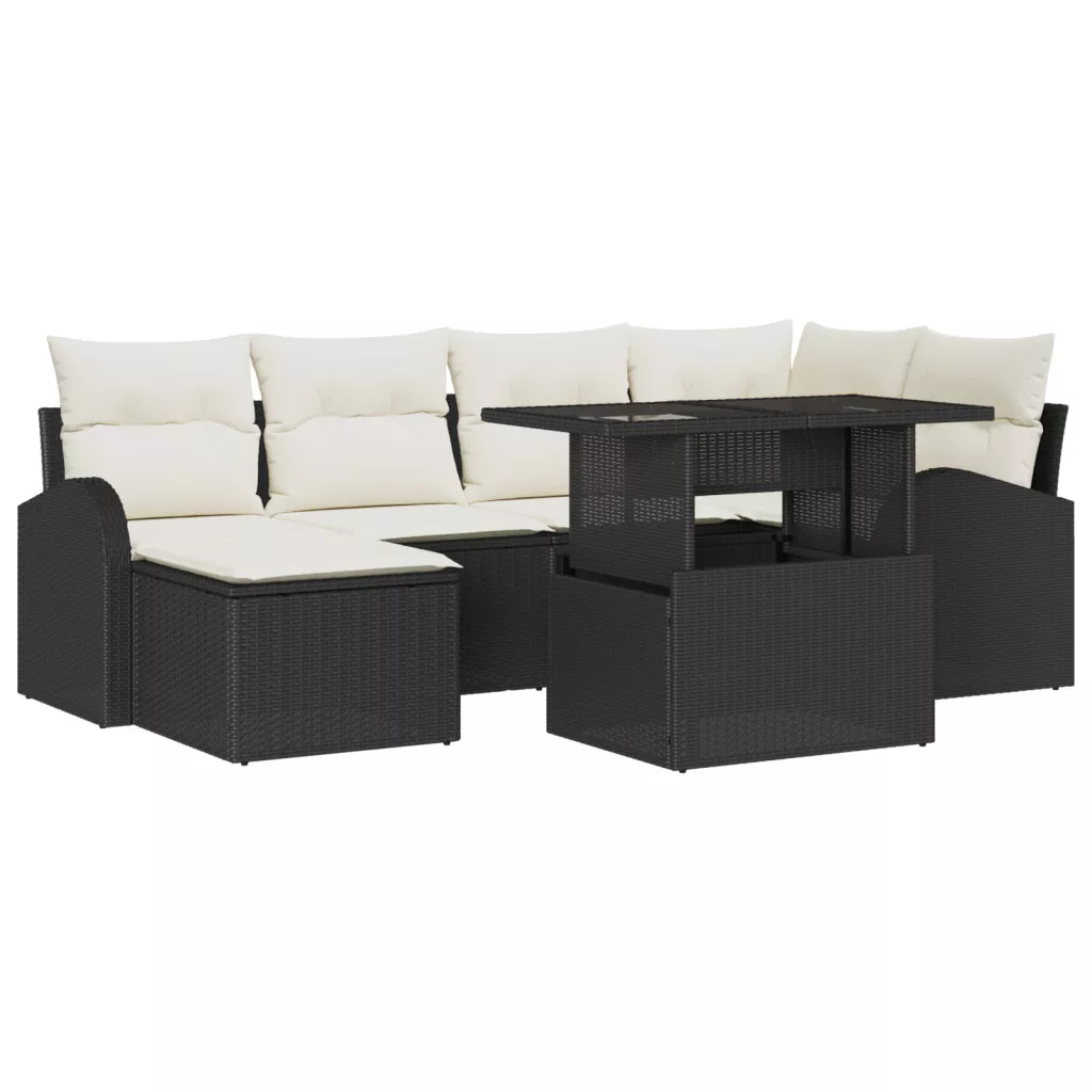 7 Részes Kerti Kanapé Szett Párnákkal, Fekete Poli Rattan