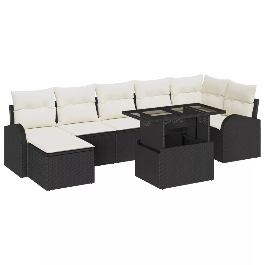 8 Részes Kerti Kanapé Szett Párnákkal Fekete Poli Rattan
