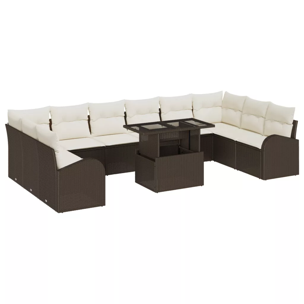 11 darabos Kerti Kanapé Szett párnákkal Barna Poli Rattan