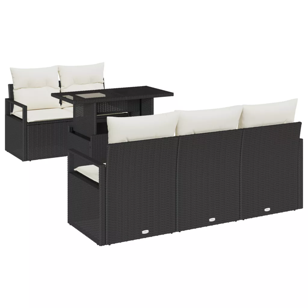 6 Részes Kerti Kanapé Szett Párnákkal Fekete Polirattan