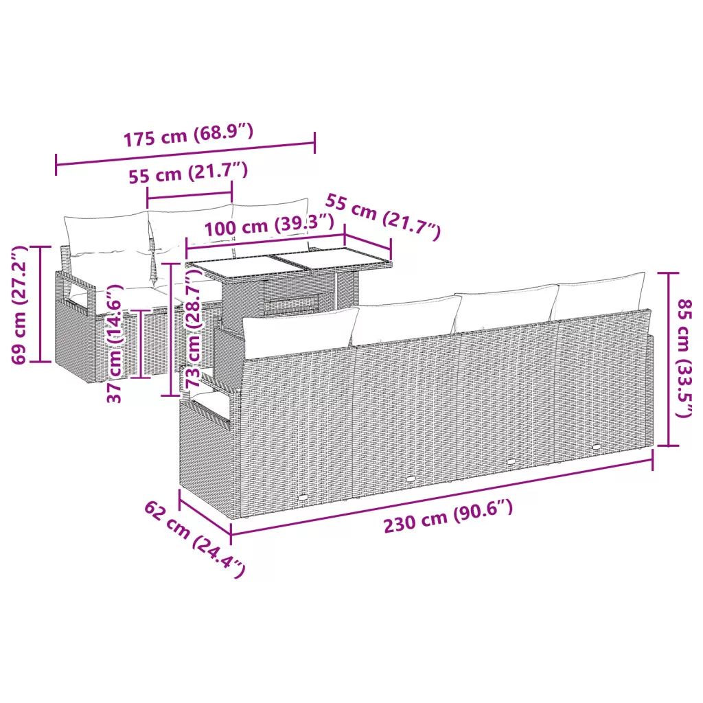 Ez a 8 darabos kerti kanapé szett a stílus és kényelem jegyében készült, ideális kültéri pihenéshez és étkezéshez. Kézzel szőtt poli rattanból készült, csodás hangulatot ad bármilyen erkélynek vagy terasznak, szuper választás összejövetelekhez. Moduláris dizájn: Az elrendezés lehetővé teszi, hogy könnyen átrendezd a kültéri területen az igényeidhez igazítva, segítve a tökéletes beállítás kialakításában bármilyen alkalomra. Kézzel szőtt: Minden részt gondosan szőttek, elsőrangú rattannal, ami stílust és tartósságot nyújt, így a bútorod évekig jól mutat. Állítható lábak: Ez a funkció segít a görbe felületeken is, stabilitást és kényelmet ad, bárhol is helyezed el a kanapé szettet. Tágas kapacitás: Akár hat ember is kényelmesen elfér, a szett tökéletes összejövetelekhez, biztosítva, hogy mindenki kényelmes ülőhelyet találjon. Könnyű karbantartás: A levehető párnahuzatok egyszerűvé teszik a tisztítást, biztosítva, hogy a kanapé szett mindig friss maradjon.