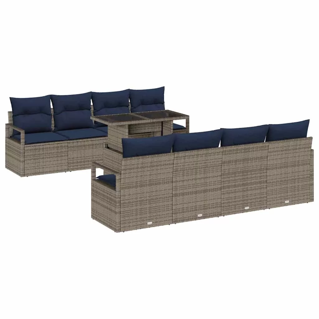Kerti Kanapé Szett párnával 7 pcs Szürke és sötétkék polirattan