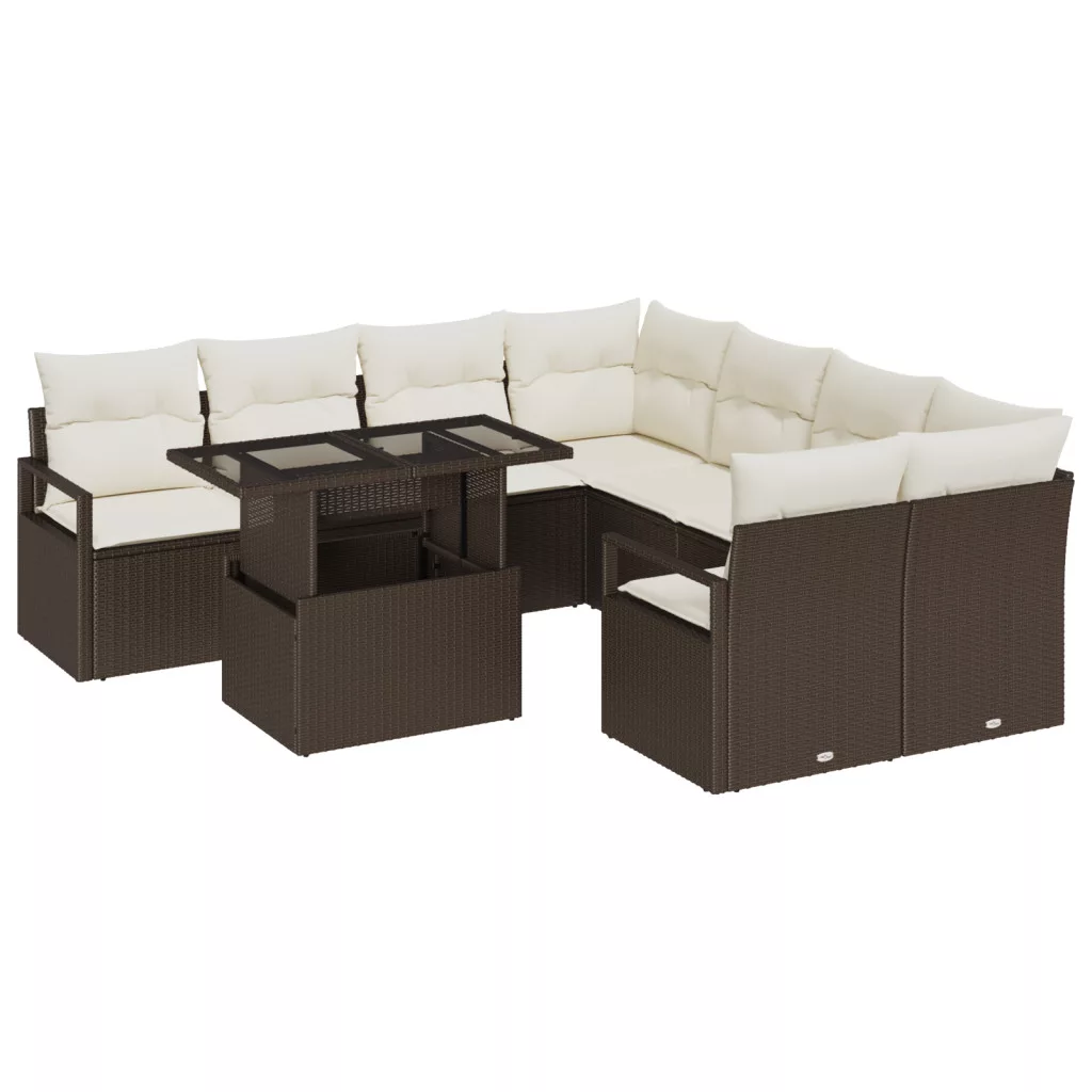 9 Darabos Kert Kanapé Készlet Párnákkal Barna Poli Rattan