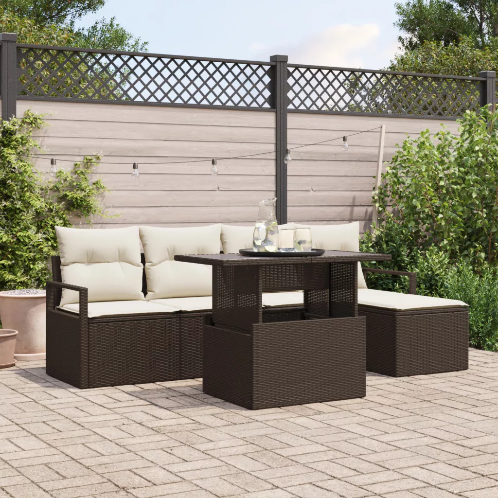 6 darabos kerti kanapé készlet párnákkal barna polirattan