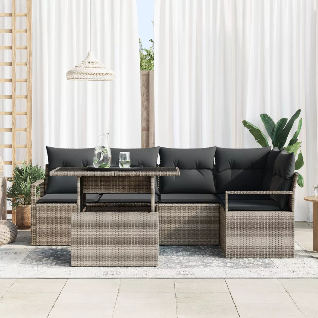 6 részes kerti kanapé szett párnákkal szürke poli rattan