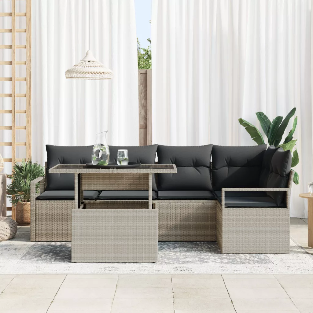 6 darabos kerti kanapészett párnákkal világosszürke poli rattan