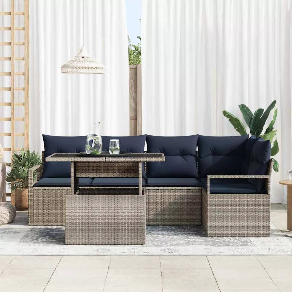 Kerti Kanapé Szett párnával 6 pcs Szürke és sötétkék polirattan