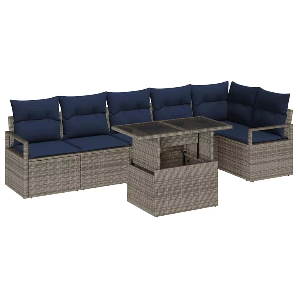 Kerti Kanapé Szett párnával 7 pcs Szürke és sötétkék polirattan