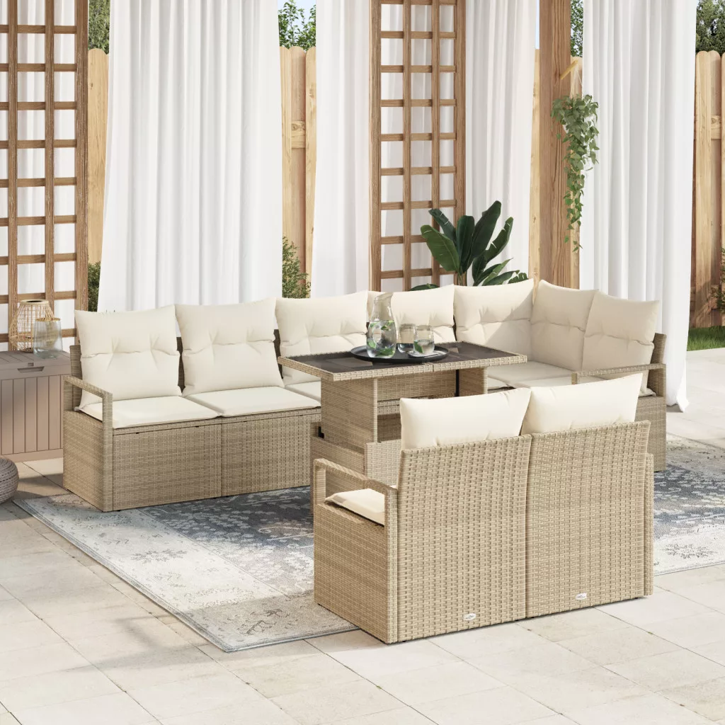 9 darabos kerti kanapé szett párnákkal Bézs Poli Rattan