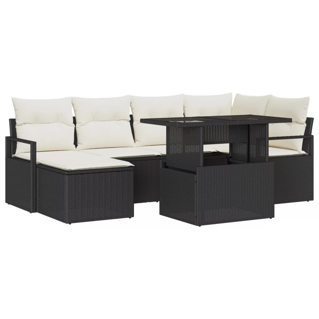 7 Darabos Kerti Kanapé Szett Párnákkal Fekete Polirattan