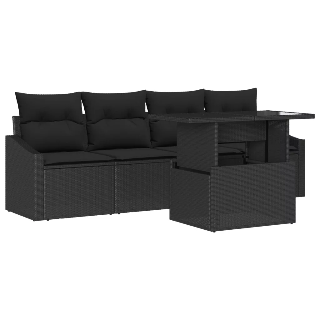 5 részes kerti kanapé szett párnákkal fekete poli rattannal